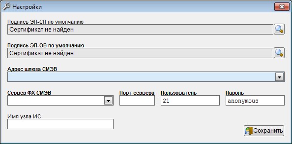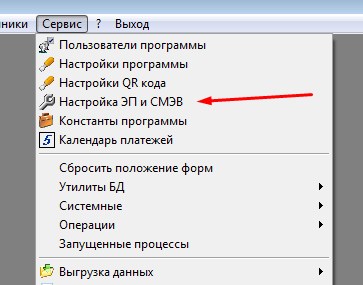 Настройки системы доступны пользователю с правами "Администратор" в меню "Сервис - Настройка ЭП и СМЭВ".