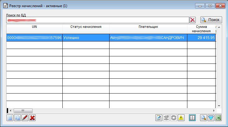 В данном окне можно найти, создать, сквитировать, удалить, подписать начисление, путем нажатия на соответствующую кнопку, размещенных на форме (функция кнопки описана при наведении на нее).