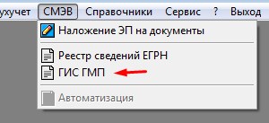 Основной функционал взаимодействия со СМЭВ "ГИС ГМП" доступен из меню "СМЭВ - ГИС ГМП".